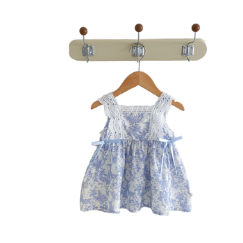 Venta al por mayor 2025 verano niñas princesa vestido cuello redondo sin mangas lindo estampado encaje hasta la rodilla vestido de verano para fiesta de cumpleaños desgaste